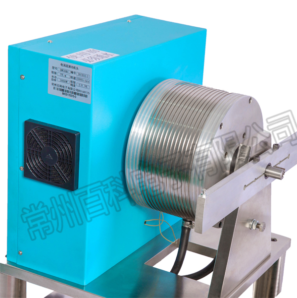 電渦流測功機由感應(yīng)子(轉(zhuǎn)子)、電樞及勵磁繞組、轉(zhuǎn)矩、轉(zhuǎn)速傳感器、底板等組成,當(dāng)感應(yīng)子被原動機驅(qū)動旋轉(zhuǎn)時,氣隙磁通密度隨感應(yīng)子的旋轉(zhuǎn)而發(fā)生渦流電動勢,并產(chǎn)生渦流,該渦流所產(chǎn)生的磁場又與氣隙磁場相互作用,產(chǎn)生制動力矩。改變定子的勵磁電流,可以調(diào)節(jié)被測動力機的轉(zhuǎn)矩。